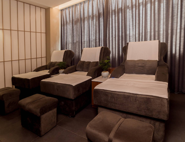 摩室布置得温馨而宁静,使用舒缓的色彩和柔和的灯光,让顾客在享受按摩服务时能够完全放松。